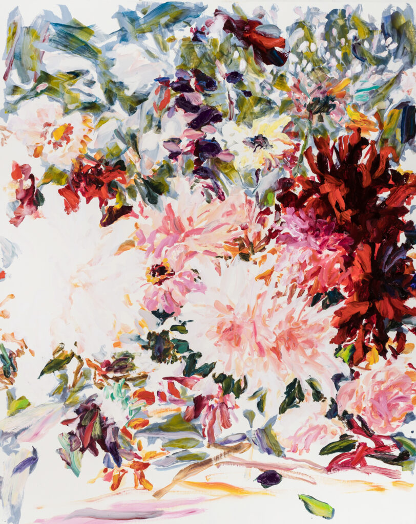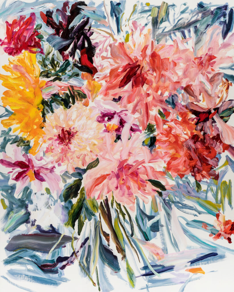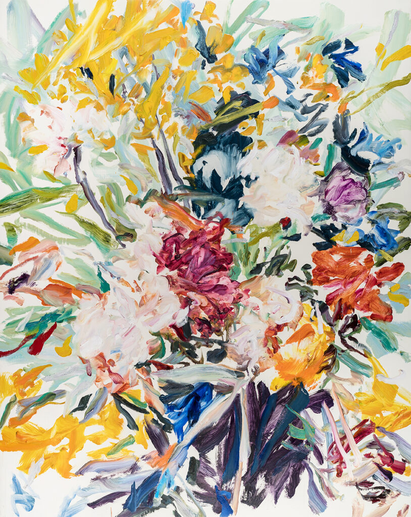 Avec la série Blossom, Gaël Davrinche poursuit son exploration de la peinture comme champ de liberté. Ici, l’artiste choisit le bouquet comme motif, non pour l’illustrer mais pour le réinventer.