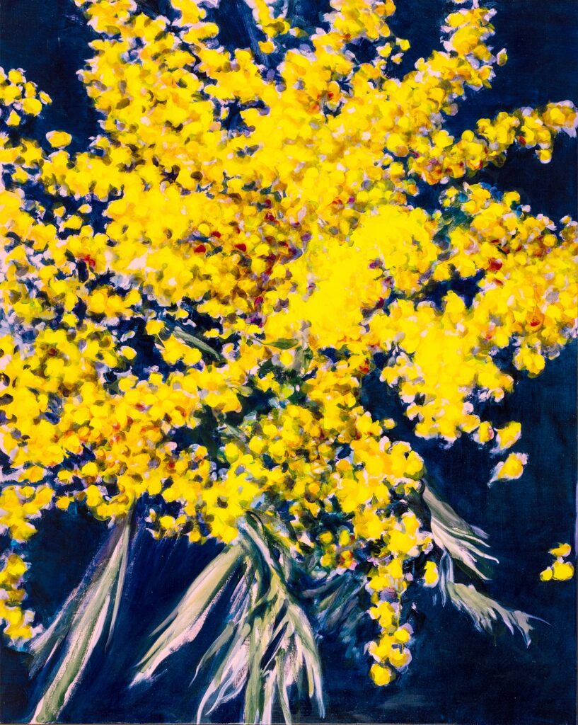 Entre figuration et abstraction, Blossom réactive un motif classique en le propulsant dans la contemporanéité. Ce qui compte ici n’est pas le détail de la fleur mais l’expérience picturale : la vivacité des touches, la fulgurance des couleurs, la sensation immédiate d’un bouquet en mouvement, vibrant de lumière et d’émotion.