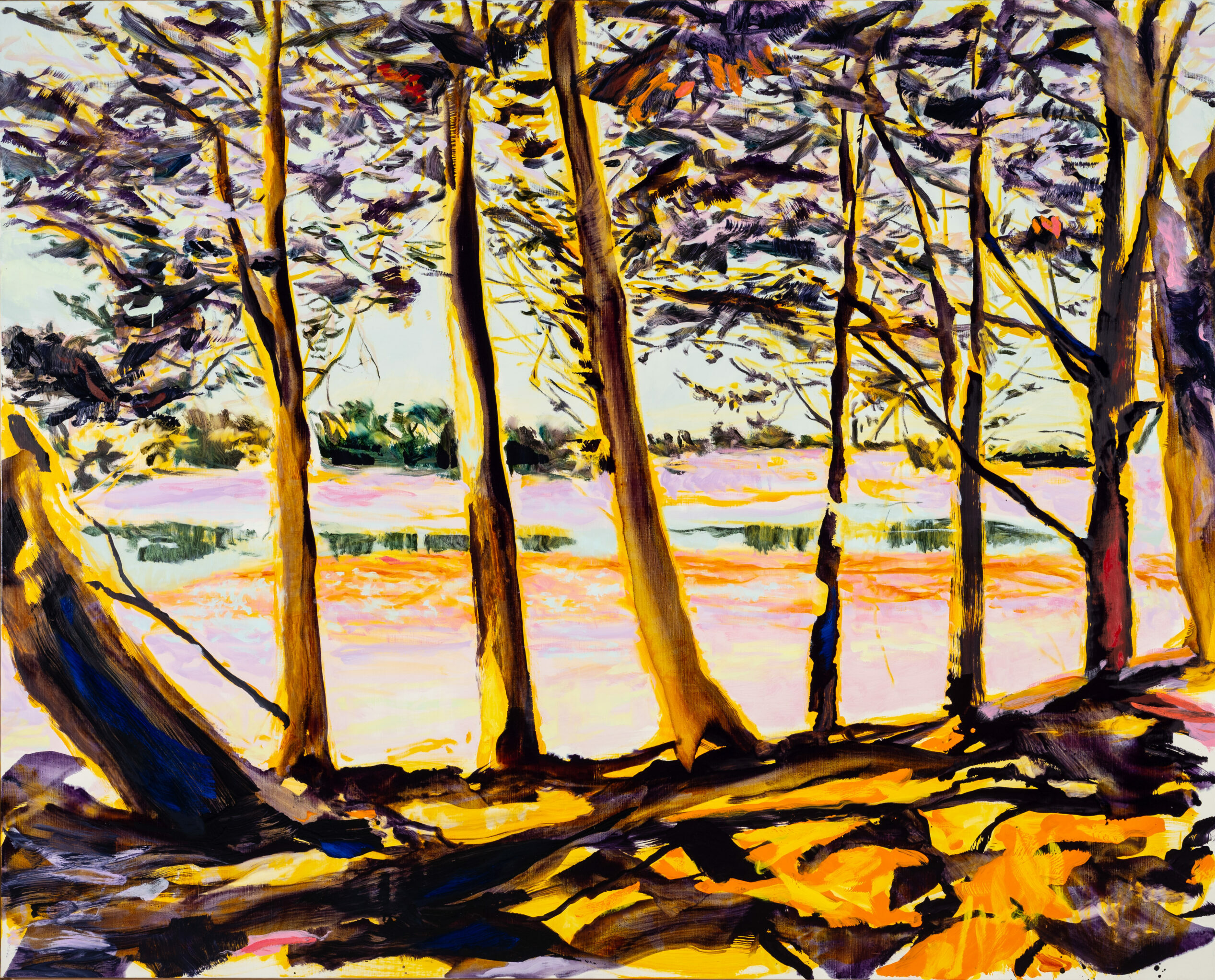 Les couleurs éclatantes s’enchevêtrent comme des feuillages, des clairs-obscurs ou des clairières, tandis qu’une lumière semble surgir de derrière le tableau — une clarté diffuse qui transperce la matière et guide le regard. Elle appelle à une lumière éternelle, intime et universelle, qui habite chacun.