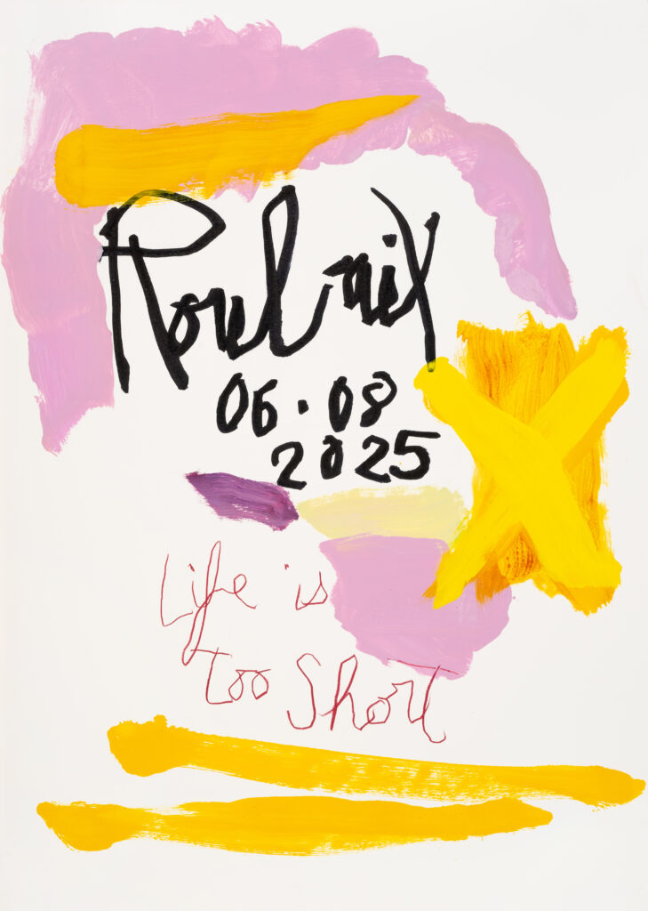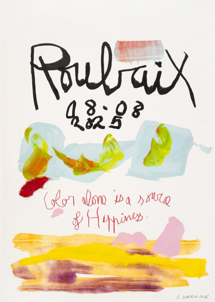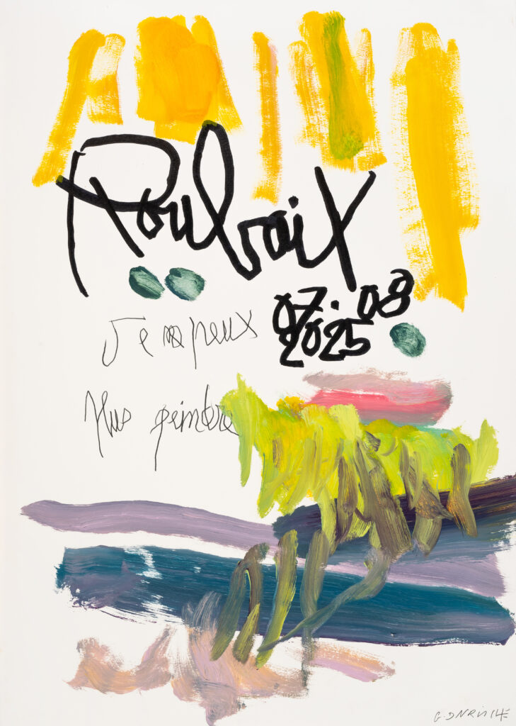 On pense bien sûr aux « Date Paintings » d’On Kawara, où le temps est consigné jour après jour, mais aussi à l’Agenda de Prévert, où écriture et dessin se mêlent dans un rapport ludique et poétique au quotidien. Chez Davrinche, ce mélange d’écriture et de peinture, de murmure et de couleur, construit une partition sensible où le banal se transforme en matière de création.